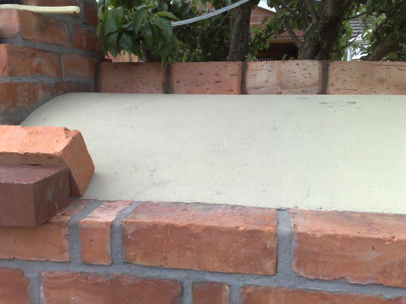 Here you can see how the cement overshell acts a natural former for the brickwork to follow. I was half expecting it to crack under the weight of the bricks, esp as the sides were not yet supported by the oven sides, but it held quite easily |